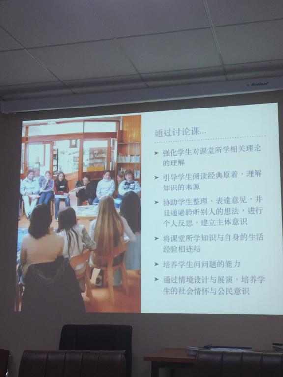 余炘伦博士分享了讨论课的目的与作用,讨论课应该注意的元素,重点结合实际教学案例介绍了他在教学过程中所使用的六种讨论课的形式:主题讨论、原著阅读、调查采访、课堂辩论、戏剧治疗、文本分析。分享结束,参加活动的老师顺着余老师的讲解,结合自己的教学过程进行了热烈的讨论,并形成了一些共识。