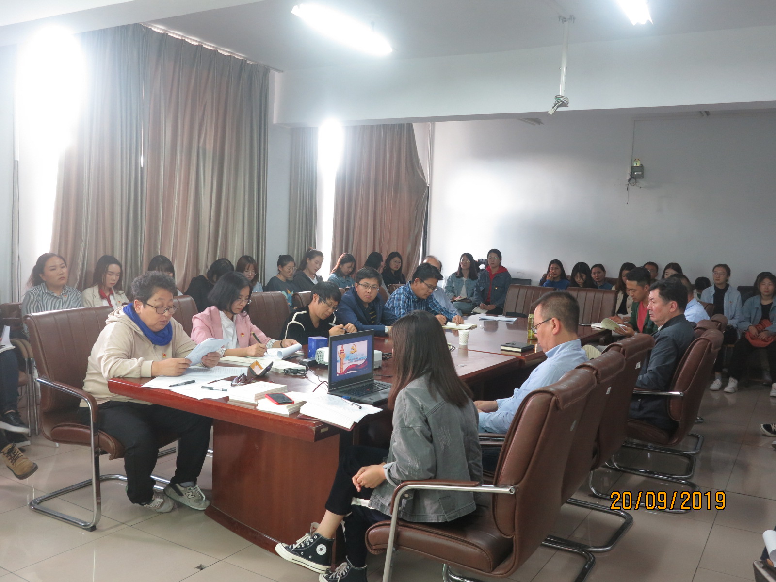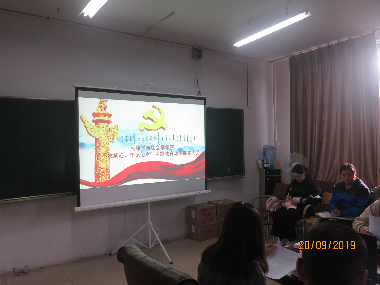 太阳成集团tyc234cc于2019年9月20日16点30分在学院4号会议室组织召开了“不忘初心、牢记使命”主题教育动员部署会。本次会议由学院党总支书记王俊玲主持,学院领导干部、各党支部书记及全体师生党员参加学习。