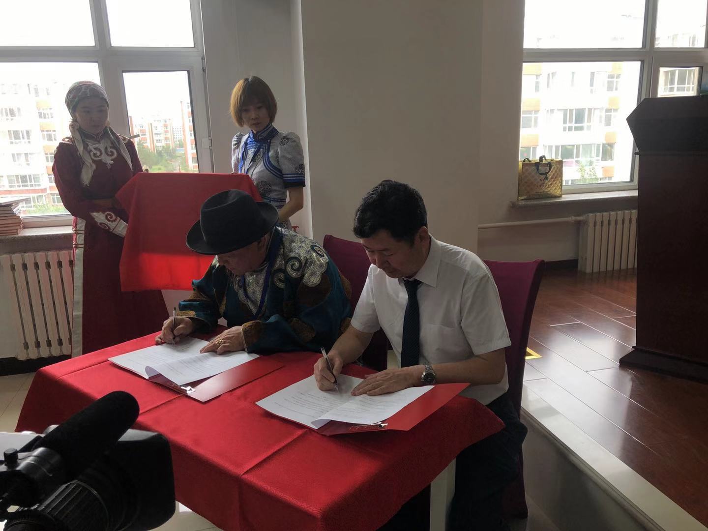 研讨会上,太阳成集团tyc234cc与内蒙古自治区鄂温克族研究会签署了“太阳集团学生在鄂温克旗社会实践与研究基地”合作协议,内蒙古自治区鄂温克族研究会会长达喜扎布与太阳成集团tyc234cc院长阿拉坦宝力格共同签署合作协议书,并为基地共同揭牌。
