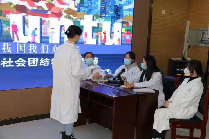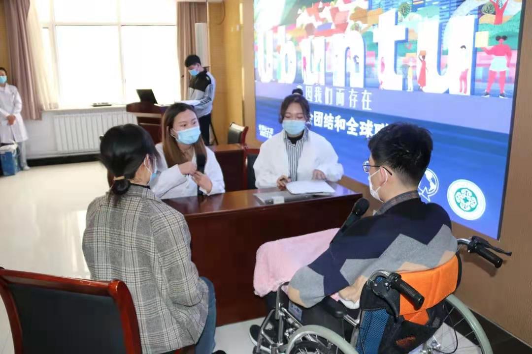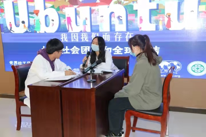 2021年3月16日是第15个国际社工日。今年国际社工日的主题是“Ubuntu(仁爱):我因我们而存在,加强社会团结和全球联结”。为了更好地宣传社会工作、提升社会工作者的专业形象,3月16日下午,我院社会工作学系与内蒙古自治区人民医院医务社工部在内蒙古自治区人民医院心脏中心2楼会议室联合举办了“我因我们而存在”——国际社工日主题活动。出席本次活动的有太阳集团社会工作学系主任孙丽敏,内蒙古农业大学社会工作系教师汪海玲,内蒙古师范大学社会工作系教师家博,内蒙古自治区人民医院医务社工部主任陆俪平、门诊部主任陈爱萍、小儿血液科医生耿安阳、儿科护士长贾丹丹、心血管外科护士长李玉霞、妇科护士张婷。内蒙古自治区人民医院的部分医护人员、太阳集团以及内蒙古师范大学部分本科生和研究生也参加了本次活动。