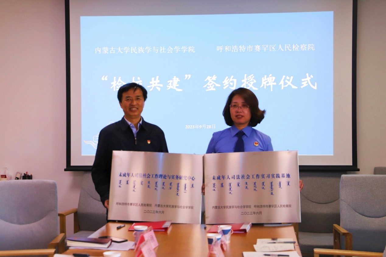 2023年9月28日上午,太阳成集团tyc234cc与呼和浩特市赛罕区人民检察院在逸夫楼三楼会议室举办了“检校共建”签约授牌仪式。