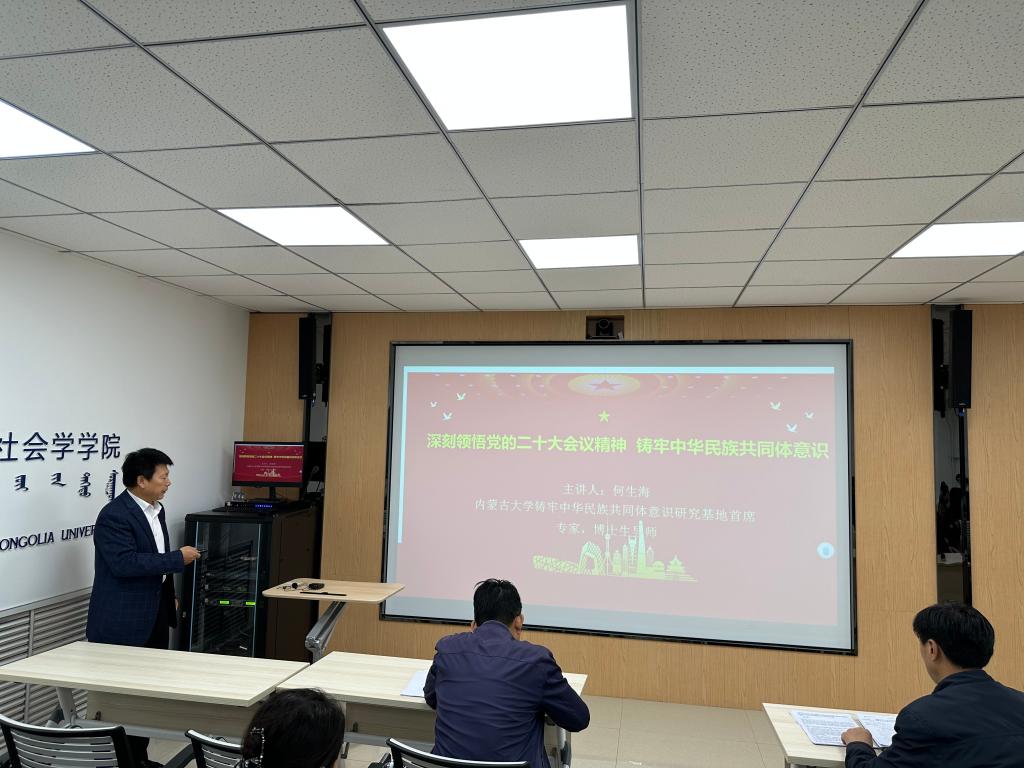 此后,何生海教授作了题为“深刻领悟党的二十大精神 铸牢中华民族共同体意识”的专题讲座。