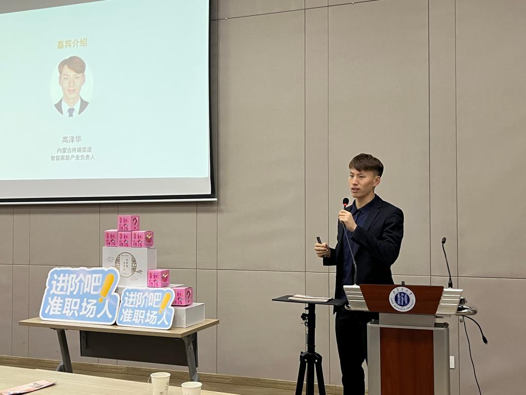 高泽华在宣讲中提到,大学生在大学期间要不断提升自我逻辑思维能力、总结反思能力,要明确好职业目标,做出正确的职业选择。他讲述了他自己作为华为人“先执行再理解”的奋斗故事,向同学们展示了真实而立体的华为文化,进一步阐释华为打造把数字世界带入每个人、每个家庭、每个组织,构建“万物互联世界”的企业理念。他为同学们展示了华为在挑战中逆势成长终全球认可的实例,展现其多路径多思路的创新思维及以消费者为中心的丰富工作常场景,引起了在场学生的激烈讨论。在高泽华宣讲结束,他就学生关心的问题给出了最诚挚的解答,幽默诙谐的语言不时赢得现场阵阵掌声。