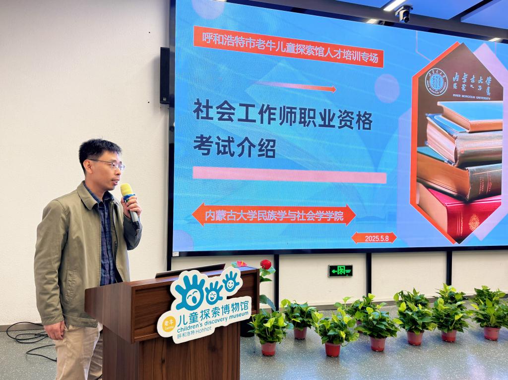 2025年5月8日中午,为了帮助呼和浩特市老牛儿童探索馆工作人员充分了解社会工作者职业资格考试相关政策、内容,提升社会工作人才队伍专业能力,我院党委书记、内蒙古社会工作学院常务副院长张士伟带队赴呼和浩特市老牛儿童探索馆开展专项培训,呼和浩特市老牛儿童探索馆付德娟、李锋等机构负责人及员工参加了培训会议。