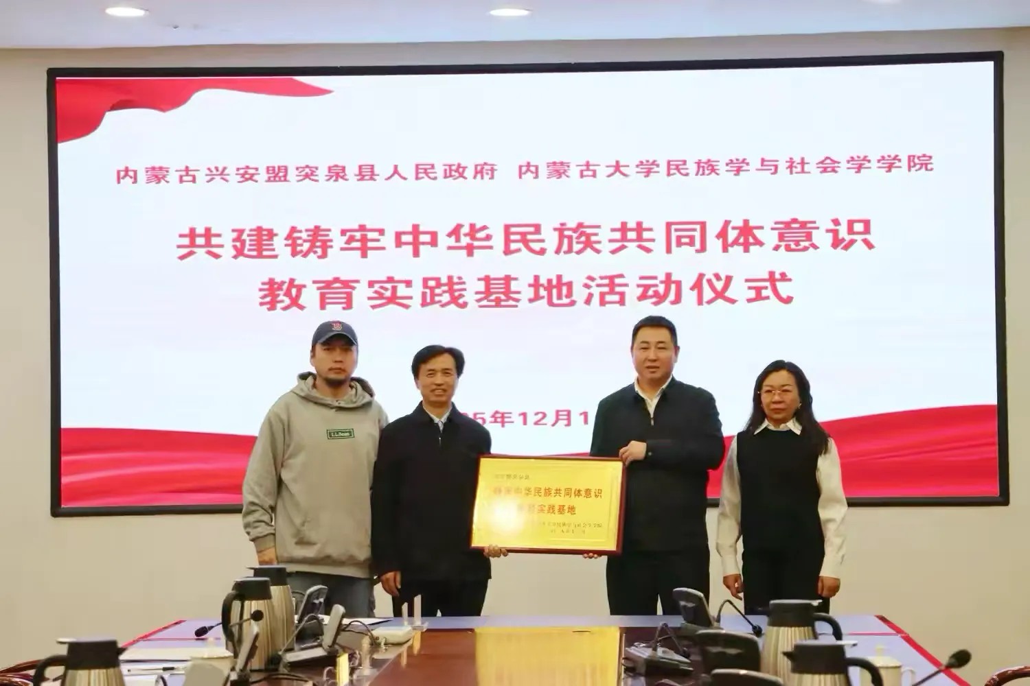 12月16日,我院党委书记张士伟一行赴兴安盟突泉县调研和商谈合作。双方在合作备忘录上签字,并举行了共建铸牢中华民族共同体意识教育实践基地授牌仪式。突泉县委常委、组织部部长满水龙出席,突泉县政府副县长王红喜主持仪式。兴安盟民委负责人及突泉县委党校、文旅体局、教育局、党群服务中心、融媒体中心等相关部门负责人,我院民族学系主任朝克赛、副教授阿达莱提·图尔荪参加了会议。