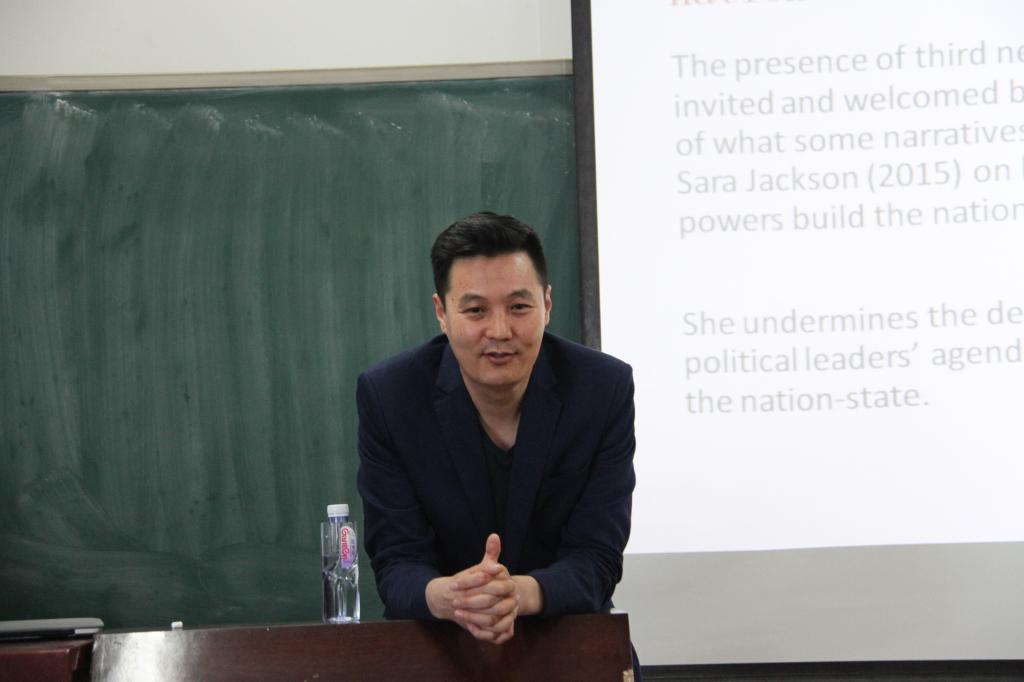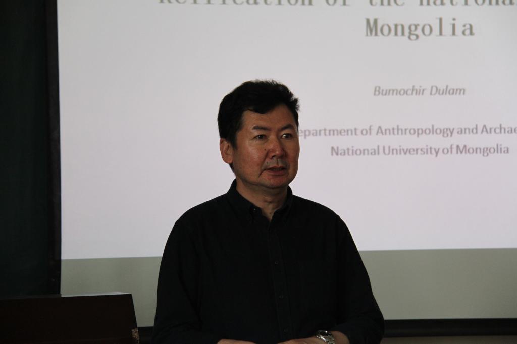 2019年5月27至5月31日在太阳集团北校区,英国剑桥大学人类学系博士、蒙古国国立大学人类学系系主任、教授Bumochir Dulam来我院进行为期5天的系列学术讲座。讲座主题分别为“蒙古国国民经济的物化与市场的兴起”,“蒙古国国家发展与资源开发”,“故乡、环境运动和民族”,“发展、影响评估及文化传承”,“国家的世俗化和再物化”。讲座语言为蒙古语、英语。本次讲座由太阳成集团tyc234cc阿拉坦宝力格教授主持。