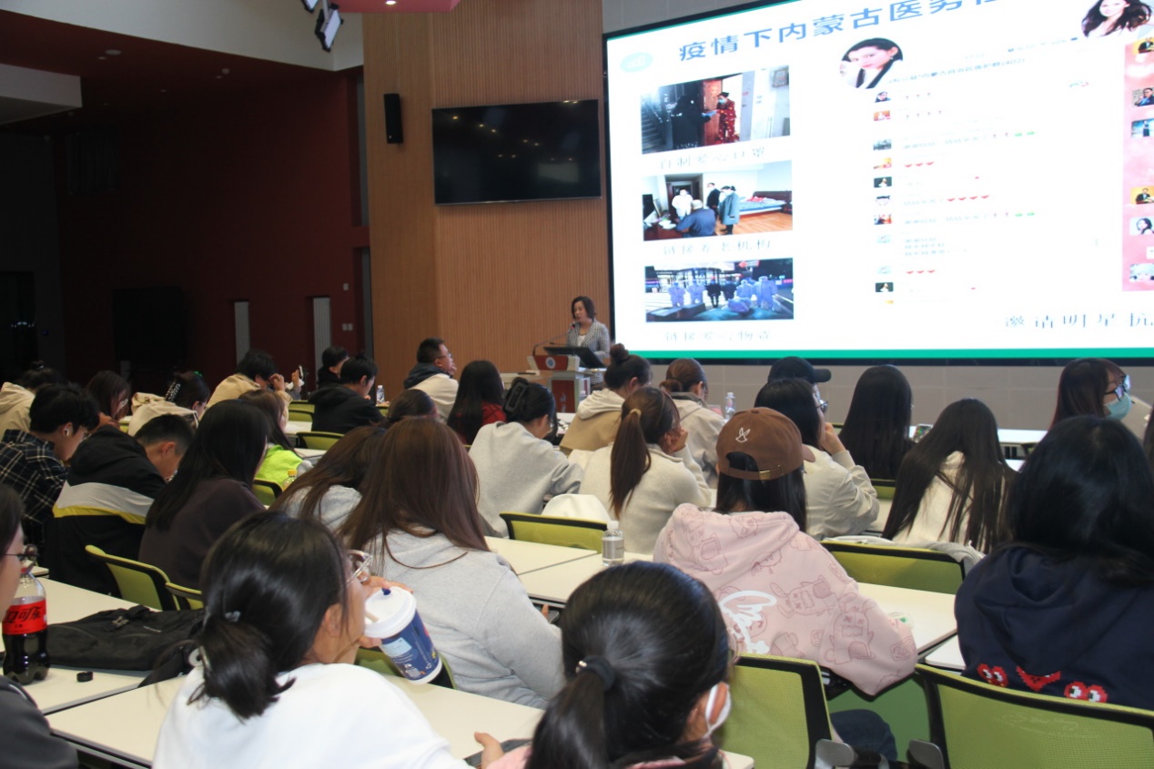讲座上,陆俪平主任以“忆往思今,大势所趋”“筚路蓝缕,以启山林”“百花齐放,春色满园”“踌躇满志,未来可期”十六字为题,为我院师生充分详细介绍了医务社会工作的起源及发展、内蒙古地区医务社会工作发展历程、全区各医院工作以及未来展望四部分内容。