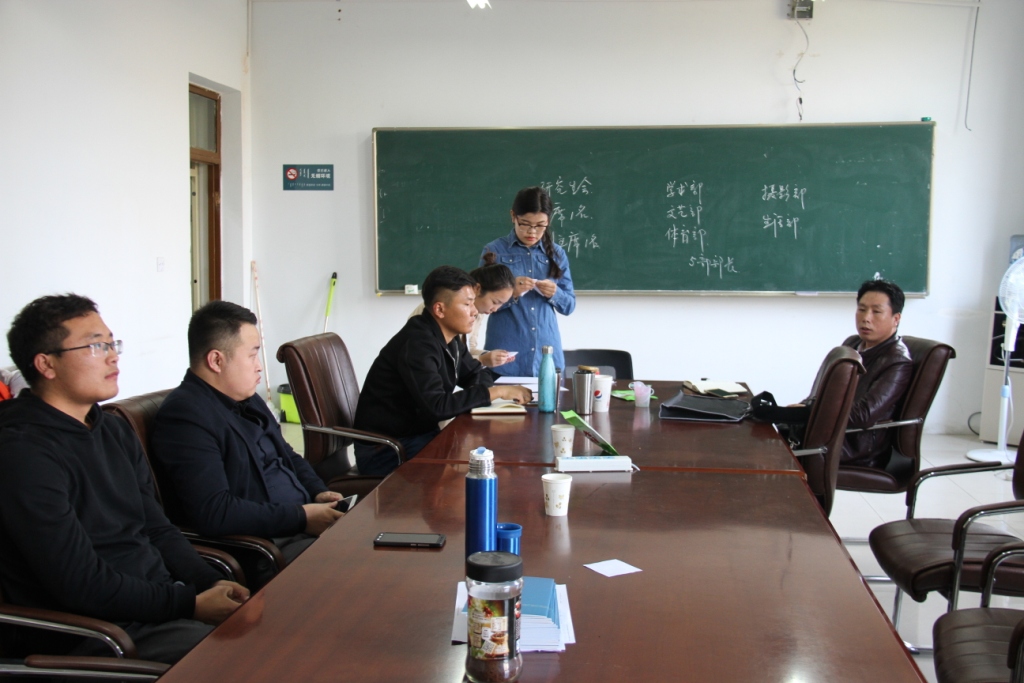 研究生辅导员杨常宝老师针对研究生会主要职能部门和研会日常举办的活动类型进行了简单的介绍,随后苏日太老师补充了相关换届规则。进行新老成员交替后,会议评选出了副主席阿斯茹、文艺部部长巴达马拉、生活部部长安格乐玛、学术部部长苏日古嘎、摄影部部长艺丽娜、体育部部长刘洋。