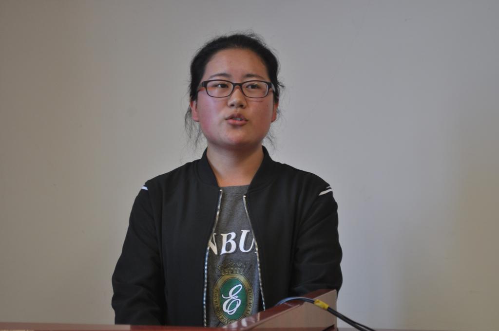 最后上场的王嘉欣学姐寄语同学们:选择你爱的,爱你选择的。她告诉同学们既然做出了决定就要认真完成,并且体会其中的乐趣,带给身边的人温暖和爱。王嘉欣学姐在我院党支部为同学和老师服务三年,她的温暖传到了每一个人的心里,她也在时间的流逝中绽放了自己的光彩,她积极参加比赛,勇于承担责任,她的青春没有白费,身为党员的她更没有辜负这个称号。