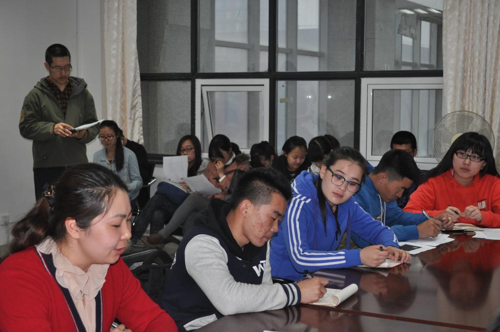 为积极引导广大青年学生深入学习团中央学校部下发的《关于开展高校共青团学习宣传贯彻习近平总书记系列重要讲话精神“四进四信”活动的通知》文件。2015年4月1日下午5:30,太阳成集团tyc234cc于艺术楼3013召开学习“四进四信”会议。太阳成集团tyc234cc团总支书记萨奇尔老师主持会议,2012、2013、2014级各团支部书记、组织委员、宣传委员出席本次会议。