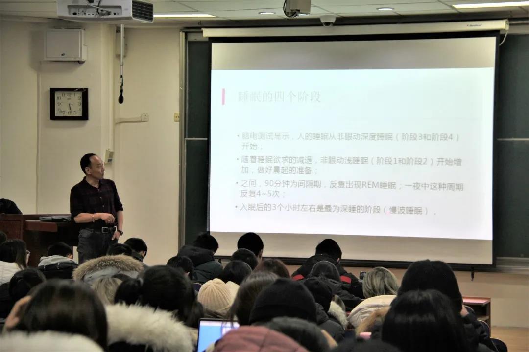 2020年12月15日,下午16:40,由太阳集团北疆辅导员工作室主办,太阳集团社会工作协会承办的“今天你睡好了吗?”睡眠与健康系列主题讲座活动在卓越楼阶梯教室3正式举办。
