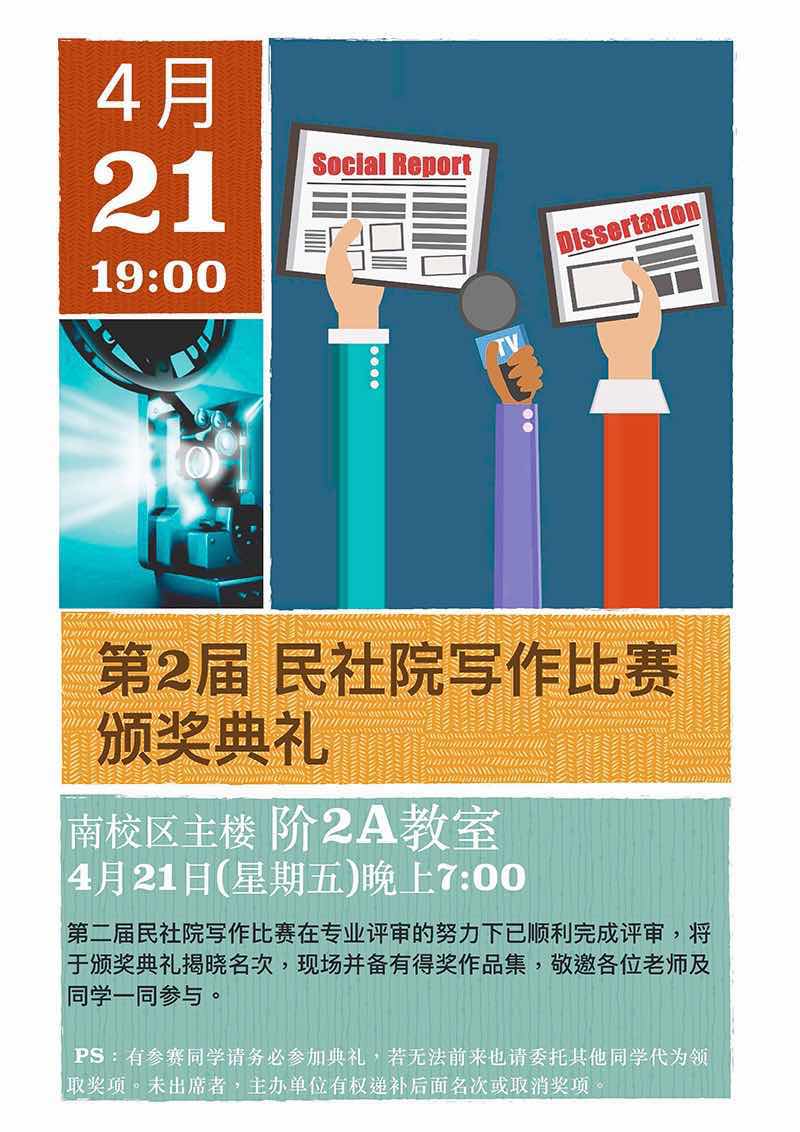 第2届民社院写作比赛颁奖典礼通知