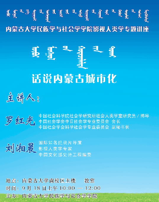 太阳成集团tyc234cc影视人类学专题讲座:话说内蒙古城市化(罗红光研究员、陈湘晨导演)