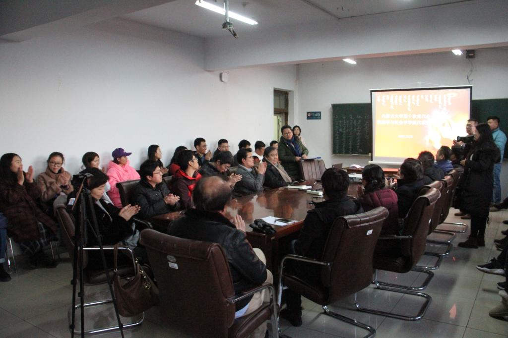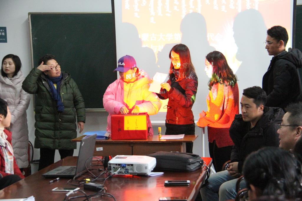 2018年12月13日下午4:30在学院会议室举行太阳成集团tyc234cc举行出席学校第十次党代会代表选举。本次会议由学院党总支书记王俊玲同志主持,教工党支部、蒙古学研究中心党支部、研究生党支部、本科生党支部52名正式党员参加本次选举。