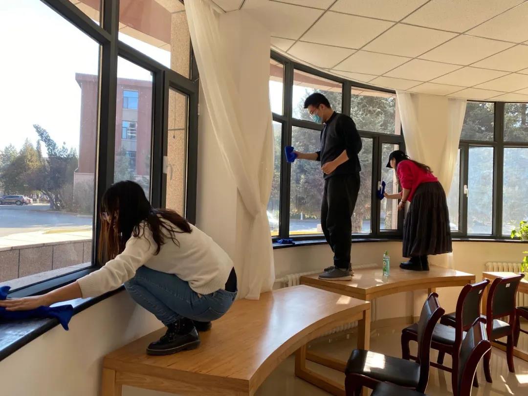 2020年11月9日至13日,为发挥党员先锋模范带头作用,美化学院环境,太阳成集团tyc234cc本科生党支部于本周组织支部党员进行劳动实践,擦洗学院楼一楼阳面的玻璃。
