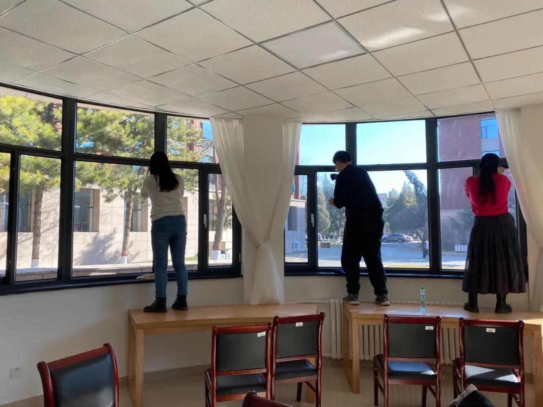 除了擦洗窗户,玻璃外,我院党支部成员还积极主动帮助管理人员整理书籍资料,将书籍分类整理好,放置于对应书架上。既减轻了管理人员的工作负担,也起到了宣传党员先锋模范精神的作用。
