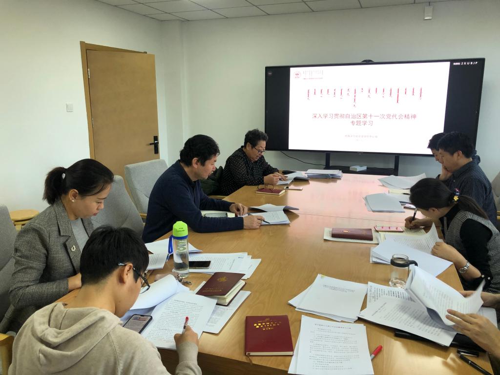 中心组就如何学习宣传贯彻落实自治区第十一次党代会精神进行研究,围绕科学研究、铸牢中华民族共同体意识研究宣传、人才培养、学习宣传等方面,制定详细工作安排和策划,将大会精神贯穿于办学治院全过程。