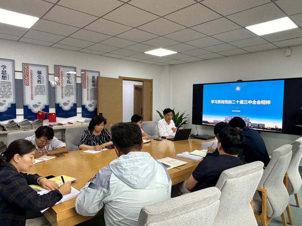 会议指出,党的二十届三中全会是在以中国式现代化全面推进强国建设、民族复兴伟业的关键时期举行的一次十分重要的会议。我们要深入学习贯彻习近平总书记关于全面深化改革的一系列新思想、新观点、新论断,深刻领会和把握进一步全面深化改革的主题、重大原则、重大举措、根本保证,切实把思想和行动统一到党中央决策部署上来,扎实推进学院各项工作。